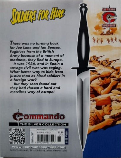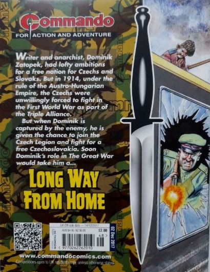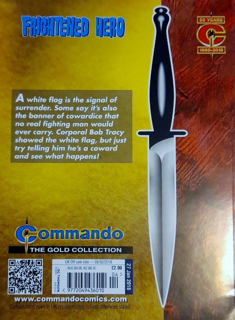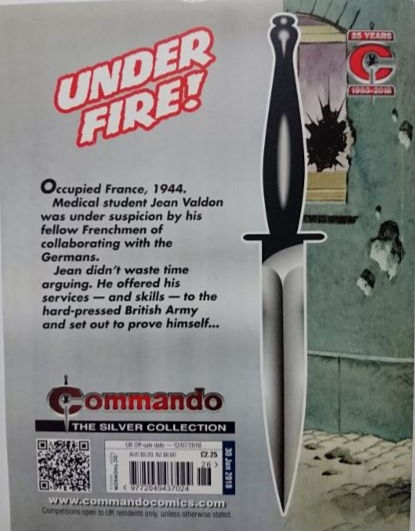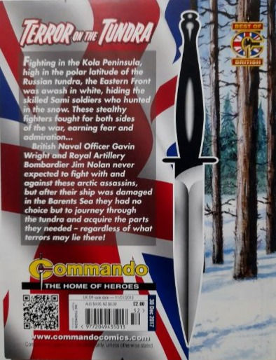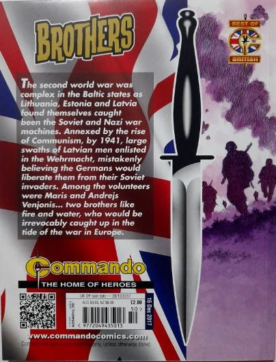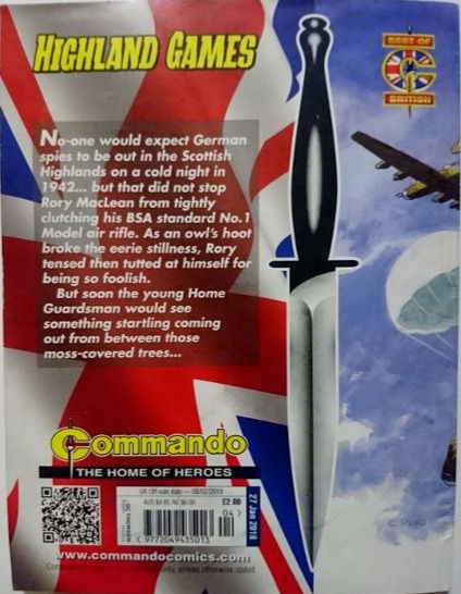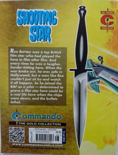 Commando For Action and Adventure, formerly known as Commando War Stories in Pictures, and colloquially known as Commando Comics, is a British comic book magazine that primarily draws its themes and backdrops from the various incidents of the First and Second World Wars. It was first published in July 1961 and is still in print today. It is noted for its distinctive 7 × 5½ inch, 68 page format that became a standard for these kinds of stories. Commando has remained more popular than many other British war comics, because of its character based stories and detailed black and white artwork, with only the covers in colour. It is considered by some to be one of the greatest war comics in history.